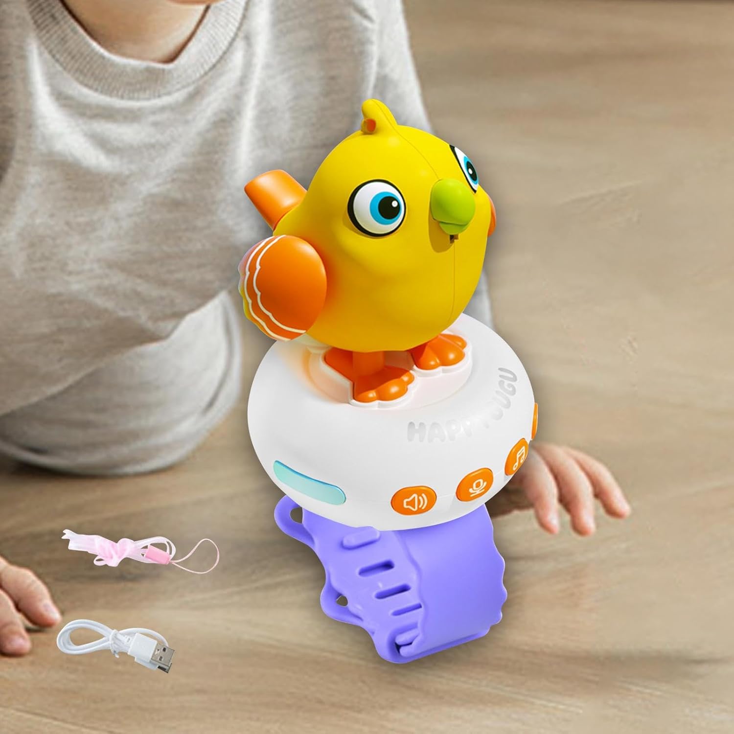 – العصفور المتحدث، لعبه ذكية تلبسها زي الساعة وتتكلم معاك! 🎤🐦 هتخلي وقت ابنك ممتع وتعليمي في نفس الوقت!