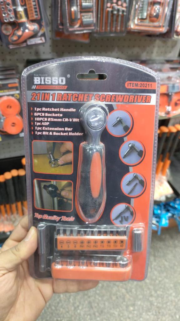 – من النهاردة متحتارش عشان تفك أي مسامير احنا وفرنالك طقم مفكات ولقم سيستم 21 قطعة مناسب لكل المسامير, الحق اطلبه قبل الكمية ما تخلص.